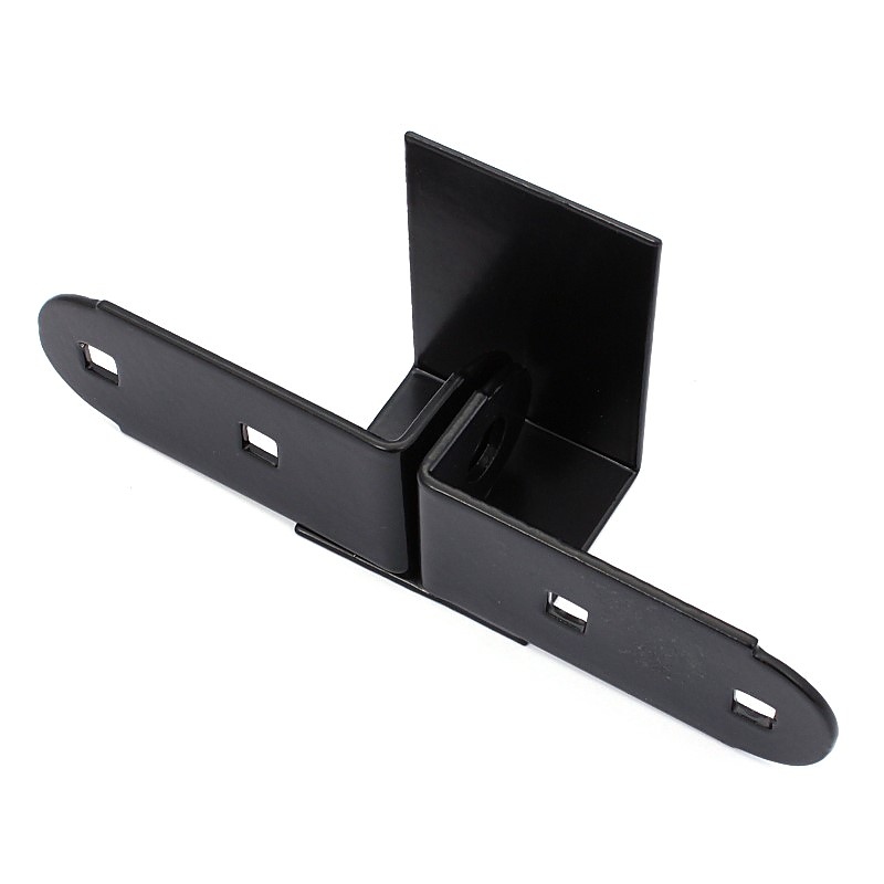 Покритата закопчалка е солидна и издръжлива планка, която е идеална за закрепване на врати. Изработена от стомана и покрита с устойчиво на надраскване прахово покритие, тя осигурява дълготрайна защита срещу неблагоприятни атмосферни условия и опити за взлом. Благодарение на дизайна си, закопчалката ефективно възпрепятства достъпа до скобата на катинара, което повишава сигурността. Продуктът се състои от две плочи, огънати под ъгъл 90 градуса, които се монтират на две крила на вратата. Монтажът е лесен и бърз, възможен с помощта на винтове или болтове, което допълнително предотвратява възможността за развиване на затварянето отвън.