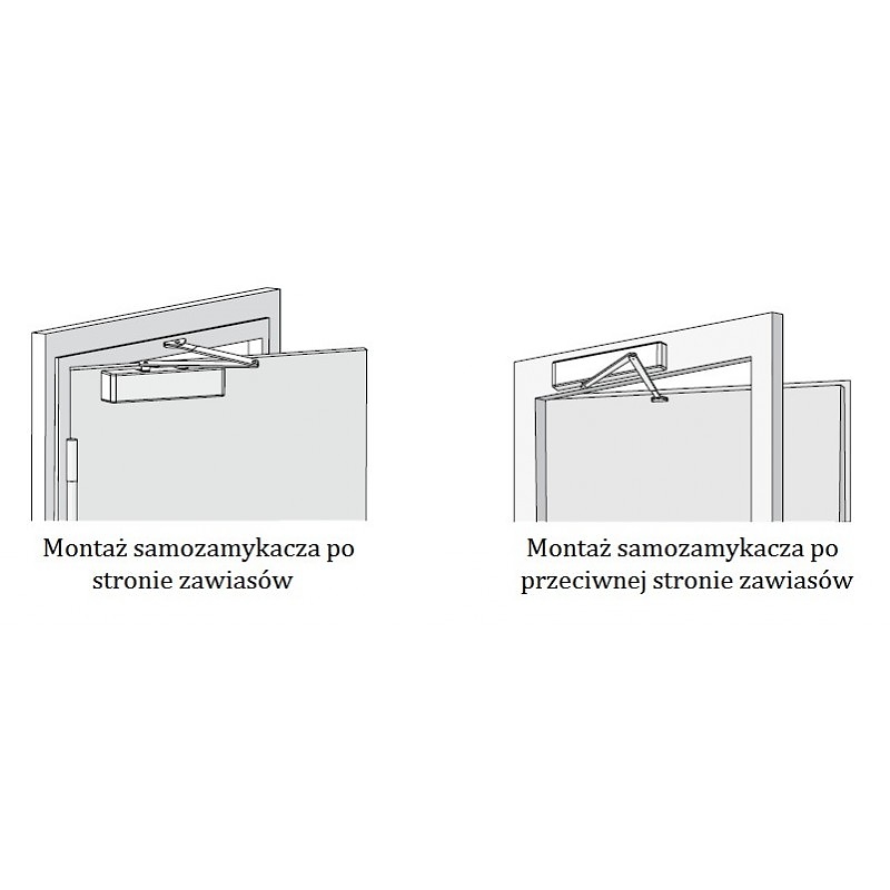 да се монтира на крилото на вратата, от страната на пантите или от противоположната страна
