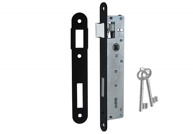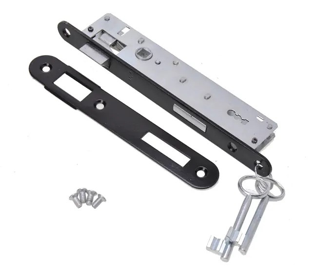 Комплектът включва брава, 2ключа,планка и монтажни винтове.