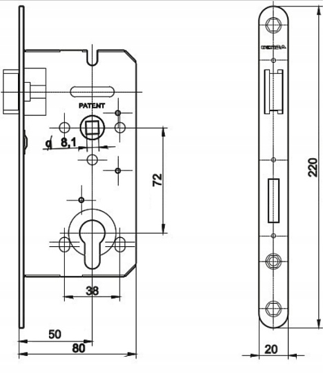Универсална брава за интериорни и външни врати GERDA ZW 100