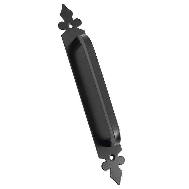 Черна ретро дръжка за врата LILIA XL е стилна дръжка, изработена от стомана, идеална за плъзгащи се врати, портали и вратички. Неговият уникален дизайн в планински стил добавя характер към всяко пространство. Дръжката е с орнаменти във формата на лилия, които придават елегантност.