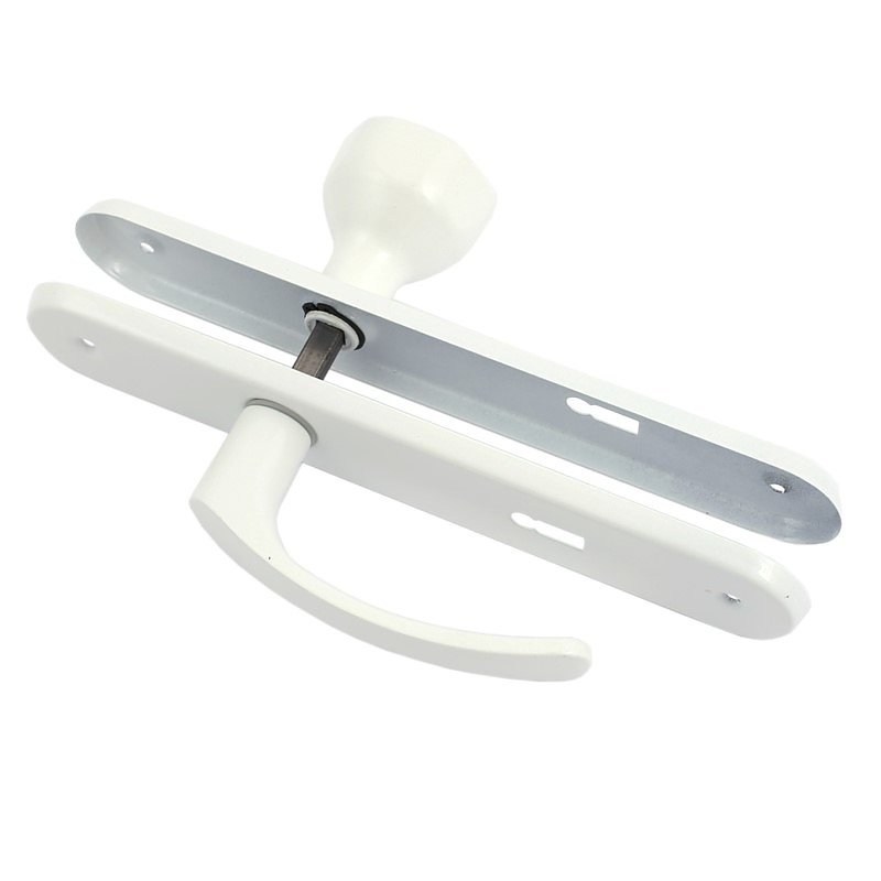 Монтирането на дръжката е много лесно. Комплектът включва монтажни винтове за врати с дебелина 35-60 мм. Четвърта на дръжката е с размери 8х8 мм, а самият продукт е с размер 90 мм. Дръжката е прахово боядисана в бял цвят. Отворът на дръжката е пригоден за брава с цилиндрична вложка /патрон/. Дръжката е двустранна, което означава, че може да се монтира както от лявата, така и от дясната страна на вратата.
