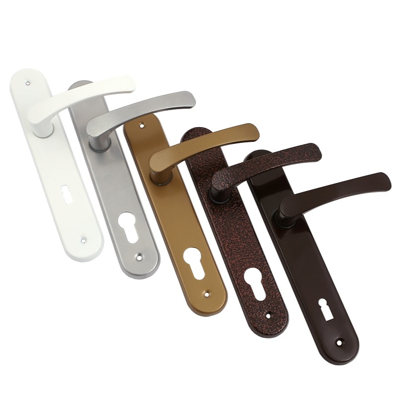 Комплектът включва 2 комплекта обков, стандартен размер четвърт за ключалки, винтове M4X60mm за монтаж на врати с дебелина 35-60mm и капачки в цвета на основите. Материалът, от който е изработена дръжката е стомана в комбинация с ZnAl. Продуктът е лесен за монтаж и е предназначен за врати, портали, портали и др.