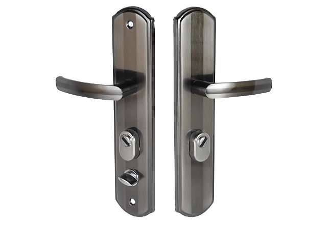 Широка дръжка за врати произведени в Китай (278x65), HARDY никел. Има допълнителен заключващ механизъм.