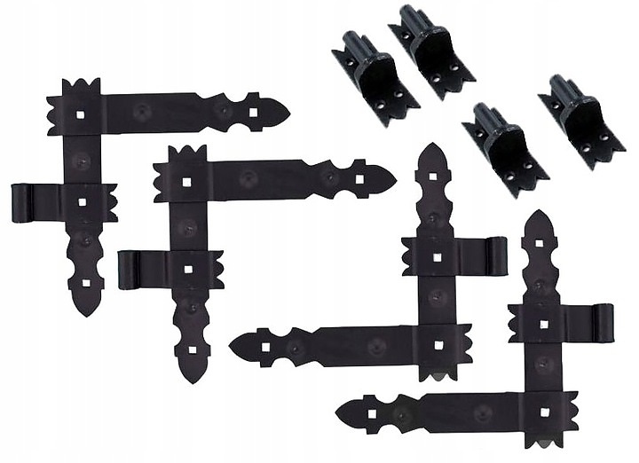 Комплектът включва: 4 ъглови панти с рамена 30x40 см, монтажни куки