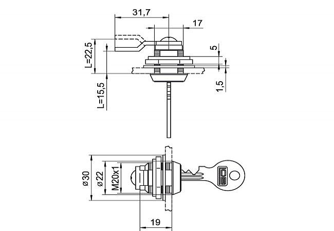 Мебелна ключалка касетъчна -22mm LOB ZKP-22