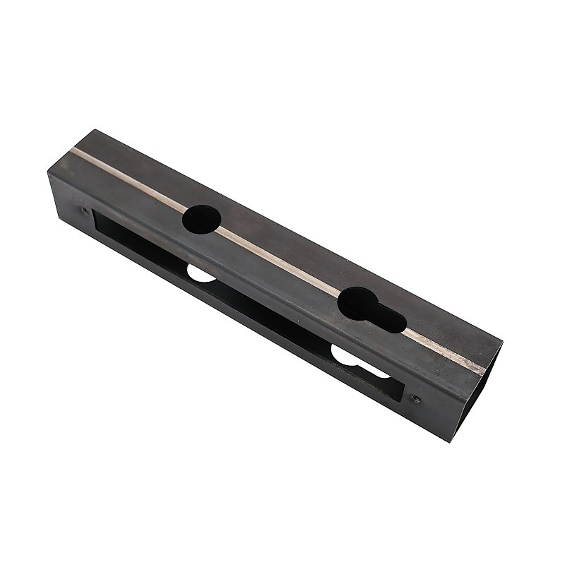 Кутията с профил 40x40 е стоманен конструктивен елемент, предназначен за монтиране на вградена брава в портали, вратички или стоманени врати. Този продукт е необходим за лесен монтаж на бравата и осигурява нейното стабилно и естетично монтиране в конструкцията. Изработването на дупки чрез лазерна технология гарантира прецизност и безопасност на употреба благодарение на гладките ръбове. Материалът, използван за производството на кутията, е сурова стомана, която след антикорозионна защита, напр. чрез боядисване след заваряване, ще бъде устойчива на атмосферни условия.