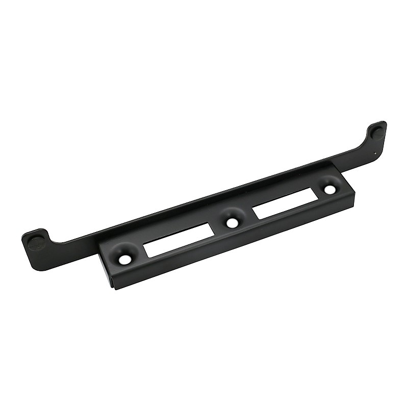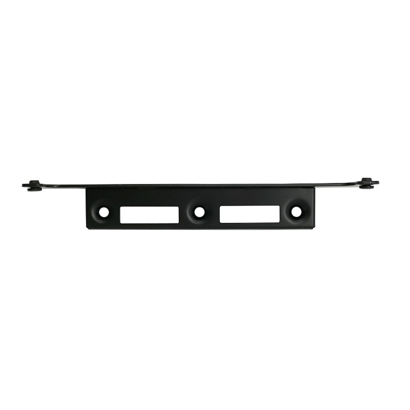 Черен насрещник за порта и врата с винт – Универсално заключване 320 мм и безшумно затваряне. Здравата, електропоцинкована стомана с допълнително черно боядисано покритие осигурява устойчивост на външни условия, докато два гумени буфера заглушават затварянето и защитават боята на вратичката. Разстоянието между отворите е съвместимо със стандартни брави 70-72 мм и 90 мм, което опростява избора и ускорява монтажа в нови и обновени огради. Универсален дизайн – ляв или десен монтаж, тип за винтове.