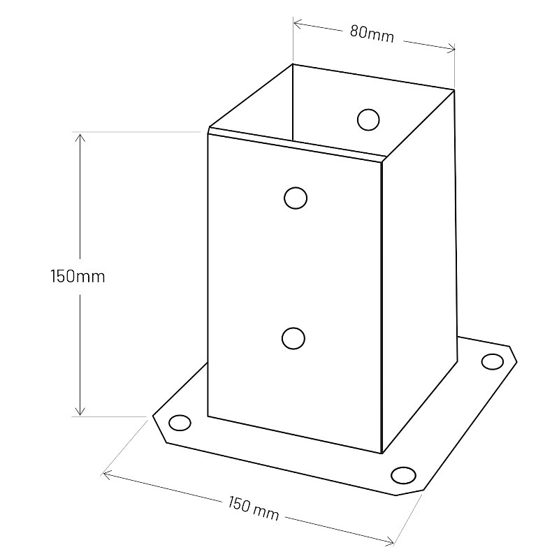 Височина 150 mm x основа 150x150 mm, завинтена към бетон.