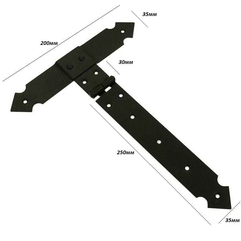 Декоративна триъгълна панта с размери 250х2,5 мм, изработена от горещо поцинкована ламарина и боядисана с черна прахова боя . Отличава се с естетичен дизайн благодарение на фрезованите си страни, което позволява да се монтира на видими места. Може да се използва за закрепване на врати в гаражи, навеси за дърва или плевни. Също така идеален за монтиране на домашни щори или при изграждане на каси. Характеризира се с лесен и бърз монтаж и висока издръжливост. Цялото устройство е защитено от корозия и може периодично да бъде изложено на неблагоприятни атмосферни условия.