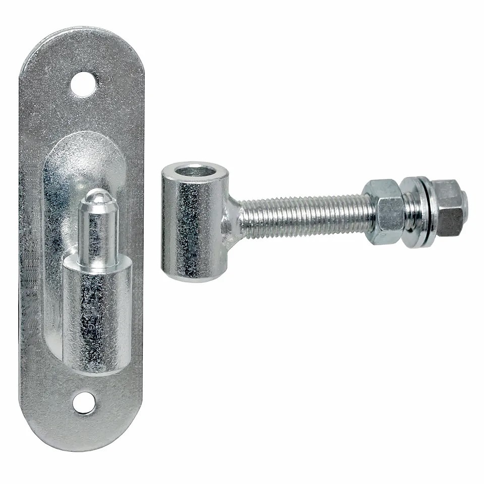 Регулируема панта с резба М12 , предназначена за монтаж на летящи портали и врати. Има планка с два отвора за завинтване и регулиране. Позволява оптимално регулиране на пантата след завършване на монтажа.
