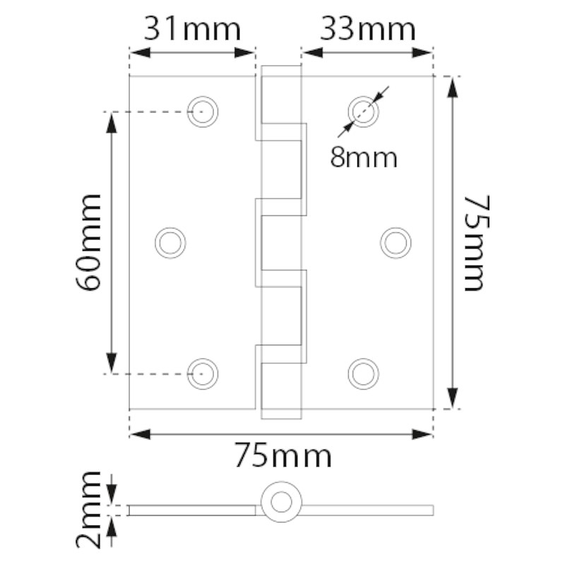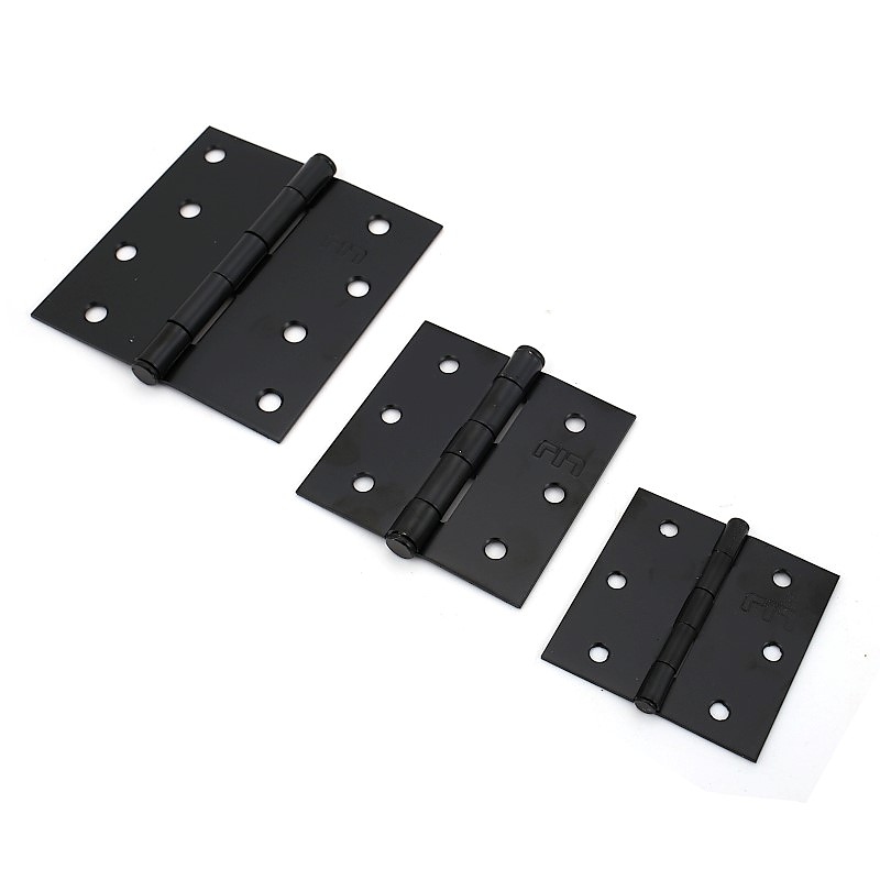 Панта тип книга ", изработена от стомана с матово черно покритие, с плоска глава и хлабав щифт идеална за дървени и метални врати. Има включени 6 отвора и винтове за лесен монтаж