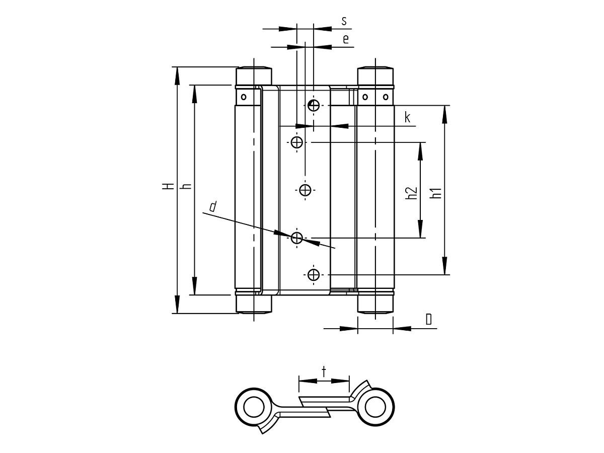 Материал: Стомана, Повърхностно покритие: Месинг, Тегло на вратата Gmax/Goptimal (kg): 15, D: 21мм, d: 4,5мм, H: 98мм, h: 75мм, h1: 54мм, h2: 21мм, k: 8 ,5мм, s: 5,5мм