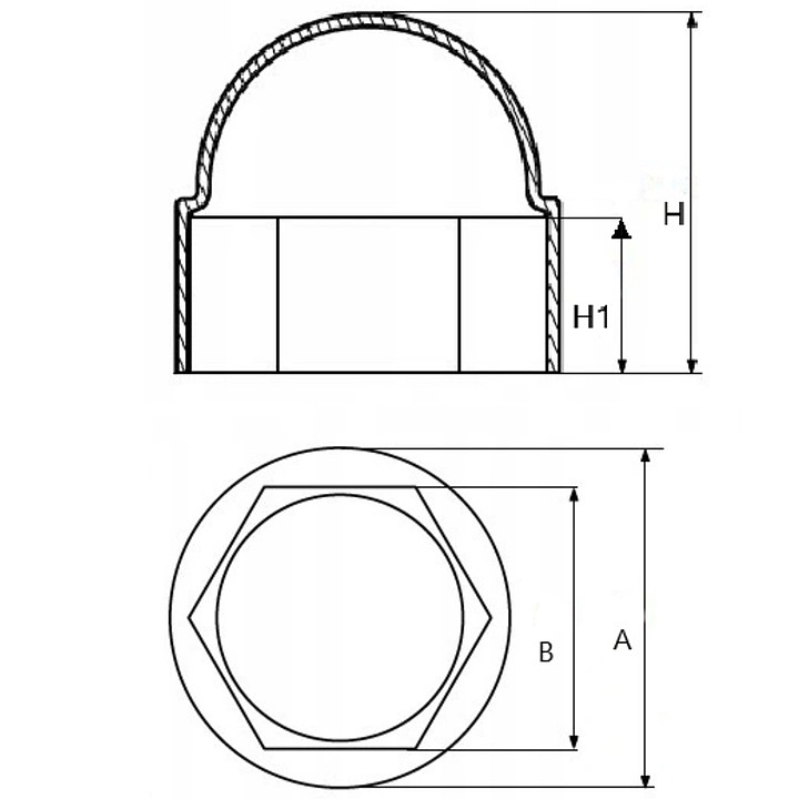 | TU-6.10 | PVC капа за болт М10 /за ключ 17/ черна | Pазмер [mm]10.0 | B [mm]16.9 | A [mm]21.6 | H [mm]20.3 | H1 [mm]10.1 | За ключ [mm]17 | quan1 | old | 0.14 лв. / 0.07 € | Добави в количката |