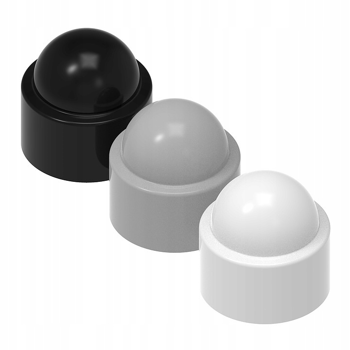 Капи за болтове от LDPE полиетилен в черно, сиво и бяло като стандарт.. Използва се като маскиращи елементи на болтове и гайки. Използват се в мебелната, машиностроителната, електротехническата и строителната промишленост.
