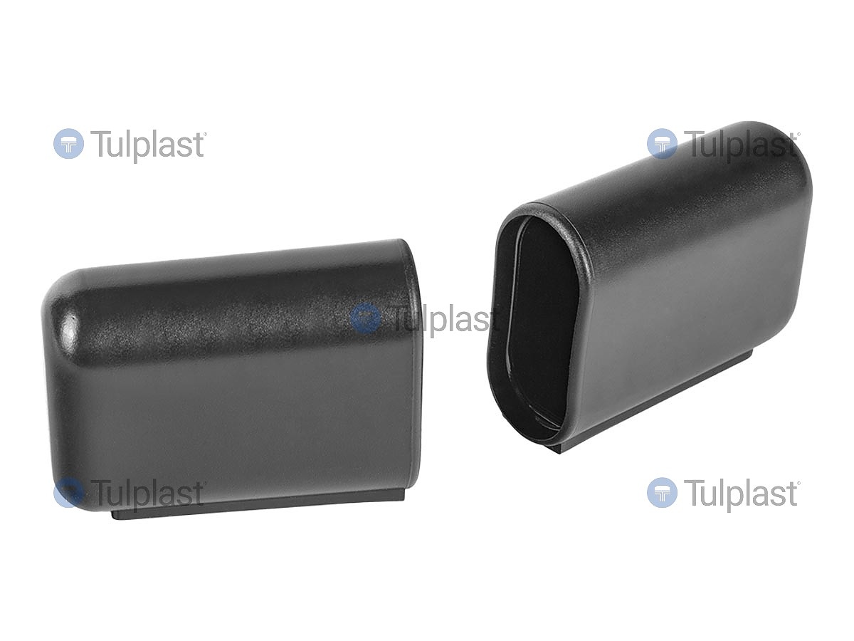 Външни капачки за овални тръби от пластмаса чрез шприцване, предназначени за запушване на профили. Използват се като външни капачки на овални тръби. Използва се в производството на мебели и интериорен дизайн, машини, електротехника и строителство.