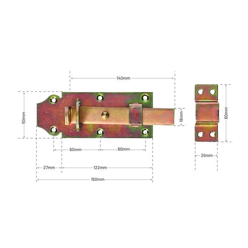 Приложение: Резето за врата MetalKraft EURO 150 мм е незаменимо за обезопасяване на вратички, портали, порти, врати, клапи, кутии, касети и метални профили. Благодарение на лесния си монтаж и здрава конструкция, той осигурява дълготрайна и ефективна защита, подходяща както за домашни, така и за индустриални приложения.