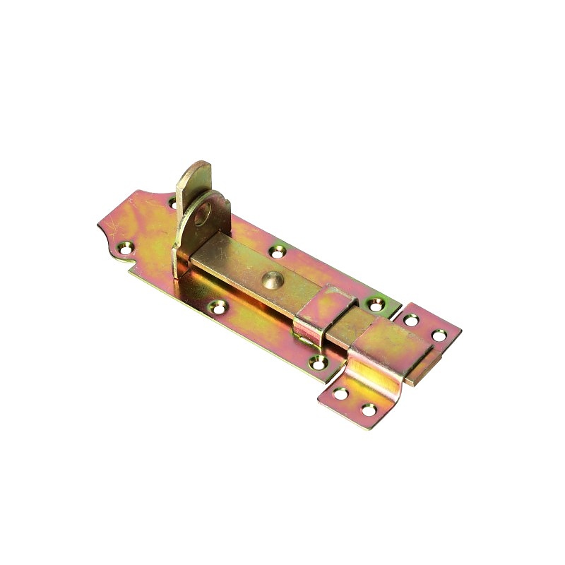 Описание: Резето за врата EURO 150mm от MetalKraft е надежден защитен елемент, идеален за различни приложения. Изработен от висококачествена стомана и жълто поцинкован, той предлага издръжливост и устойчивост на корозия. Благодарение на тесния си дизайн, ключалката се монтира лесно дори върху тесни профили и ленти, което я прави универсална и практична.