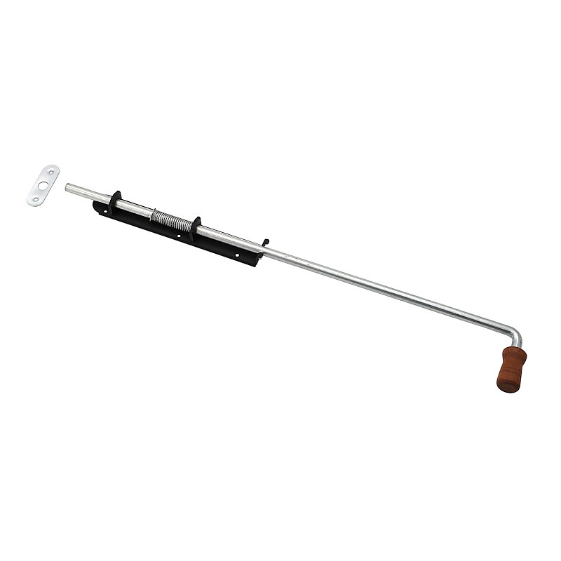 Резе 600 е компактен заключващ механизъм за врати, порти и вратички, проектиран за тесни профили и ограничено пространство за монтаж. Пружината подпомага резето, ускорявайки затварянето и стабилизирайки позицията след заключване. Черното прахово боядисано метално краче и поцинкованият стоманен болт съчетават естетическа привлекателност с издръжливост за ежедневна употреба. Дървената дръжка осигурява удобно захващане и плавно движение на резето. Това решение е особено практично, когато стандартните брави и резета са твърде широки или трудни за монтаж.