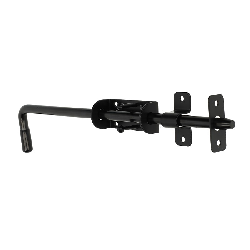 Стоманено резе за обезопасяване на врати, порти и портали. Тясната основа от 40 мм позволява монтаж върху профили с диаметър 40 мм и по-широки, което улеснява използването на тесни стълбове и рамки на вратите. Прътът с диаметър 14 мм и общата дължина от 420 мм осигуряват сигурно заключване. Черното прахово покритие допълва дървената дограма и модерните цветове на стоманените огради, като графит или антрацит. Комплектът включва два фитинга, от които да избирате, в зависимост от начина на монтаж и мястото на заключване: за повърхностен монтаж (извит) и за вграден монтаж (плоча с отвор) за заключване в рамка на вратата, стена или под. Монтаж с винтове.
