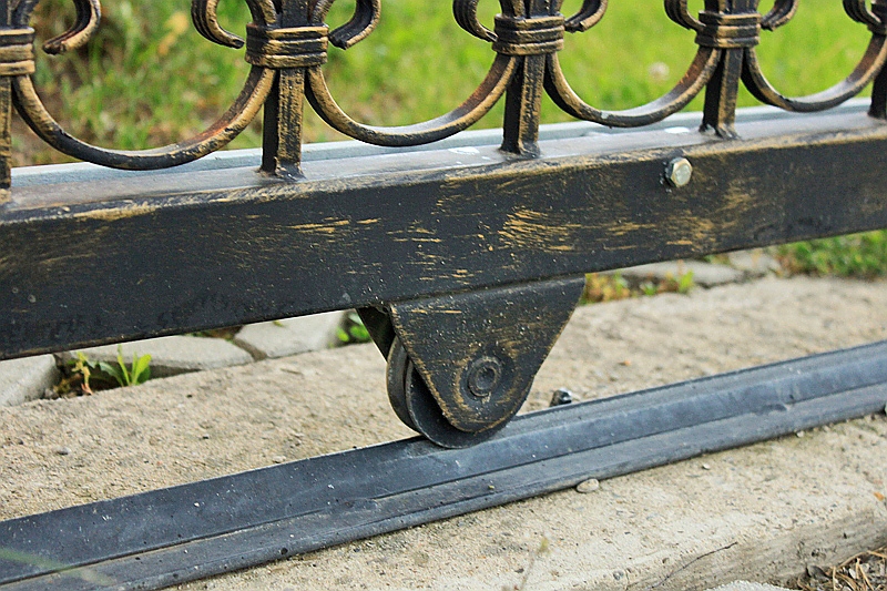 Водач с държач за Плъзгащи ролетни портали, среден 60 мм, еднолагерен, предназначен за завинтване на рамката на портала (Повърхностен монтаж), за релси тип "V", D16, горещо поцинковани.
