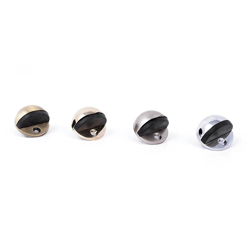 Ограничителят за врата SFERA 45x25mm е плътен метално-гумен елемент, който се монтира в пода с помощта на разширителна тапа. Основната му задача е да ограничи отварянето на крилата на вратите и да предпази вратата от изтръгване при течение, затръшване или удар на дръжката на вратата в стената. Бронята е с естетично покритие което й придава елегантен вид.