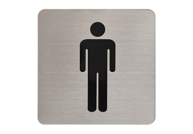 Табелка за WC врата МЪЖКА квадратна самозалепваща се 3M 70 mm x 70 mm x 1 mm, нер. стомана 304