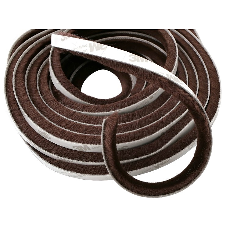 Четка за уплътнение с косъм, предназначена за уплътняване на мебели, врати и портали срещу прах и студ. Изработена от издръжлива лента с полипропиленови влакна и оборудвана със самозалепваща се лента 3M HOT-MELT, която запазва вискозитета си при различни температури. Уплътнението се монтира лесно и не изисква сложни инструменти.