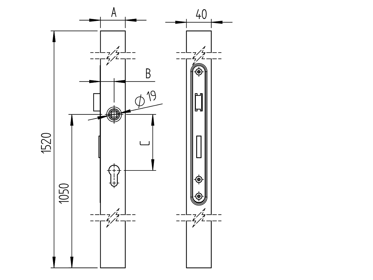 Кутия за брава к-кт с брава, без дръжка, 40мм х 40мм х 1500мм