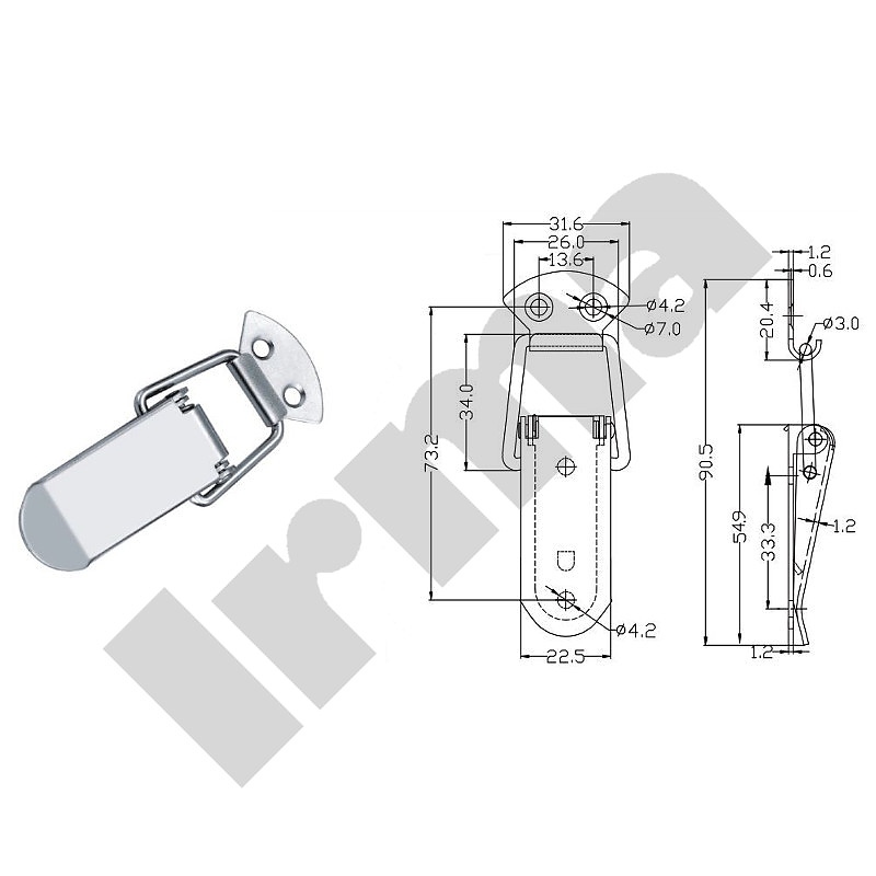 Кутийната брава XLJ103, предлагана от марката XL-TOOLS, е солидно решение, изработено от стомана със сребристо покритие благодарение на никелиране. Предназначена е за различни видове ракли, касети, капаци и врати. Продуктът се сглобява лесно с помощта на винтове, което го прави изключително практичен за използване. Закопчаването работи чрез катарама, която се прикрепя към куката и след това двете части се издърпват заедно, осигурявайки сигурно затваряне.